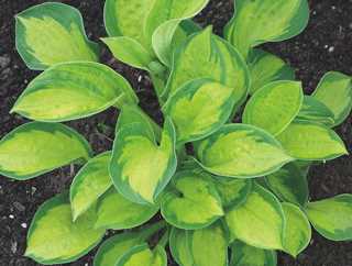 This little Hosta quickly forms a compact clump of thick cupped leaves that are yellow with deep green margins. Light lavender flowers are produced in early to midsummer. Perfect for sparking-up small spaces and containers. Asexual propagation prohibited.
